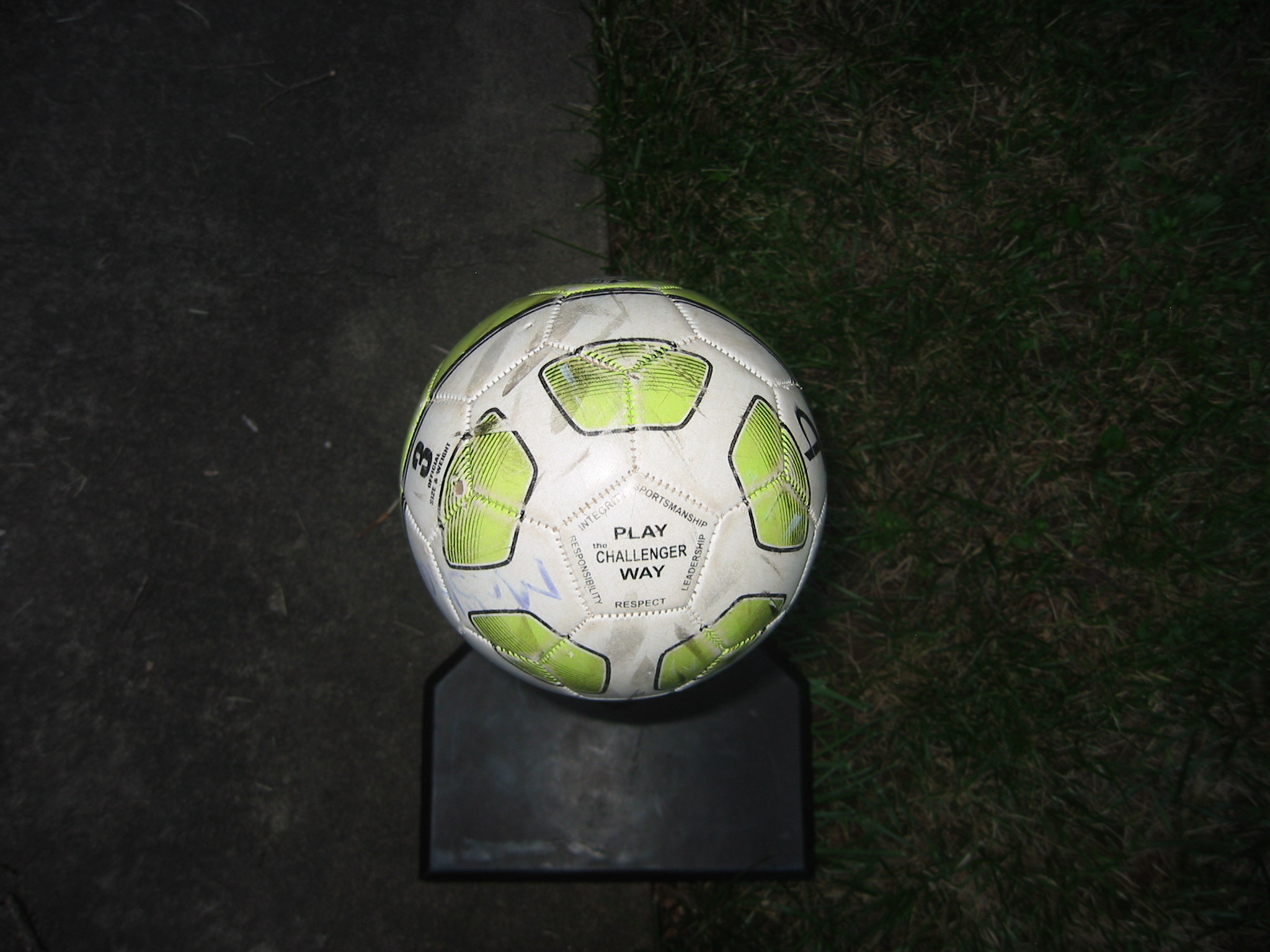The ball was suspended in the air, so we can’t look for a telltale patch of green between the ball and the line, as we often see when the ball bounces down off the crossbar. What we saw was something like this (obviously, minus the batting tee):